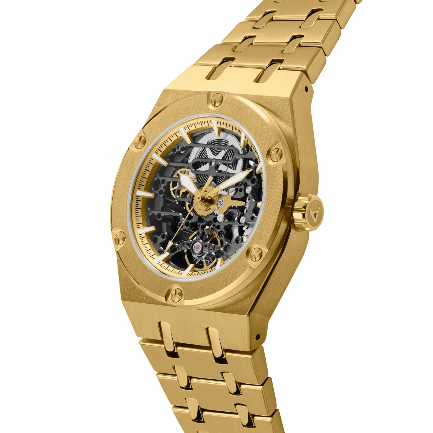 Cette montre est équipée d’un boîtier et d’un bracelet en acier inoxydable chirurgical, complétés par un verre saphir qui protège le cadran contre les rayures et le ternissement. Des vis disposées autour du cadran rappellent le design des casques de scaphandriers et lui donnent une irrésistible touche vintage.Le logo Arkai est embossé sur la couronne et gravé sur le côté opposé du boîtier.