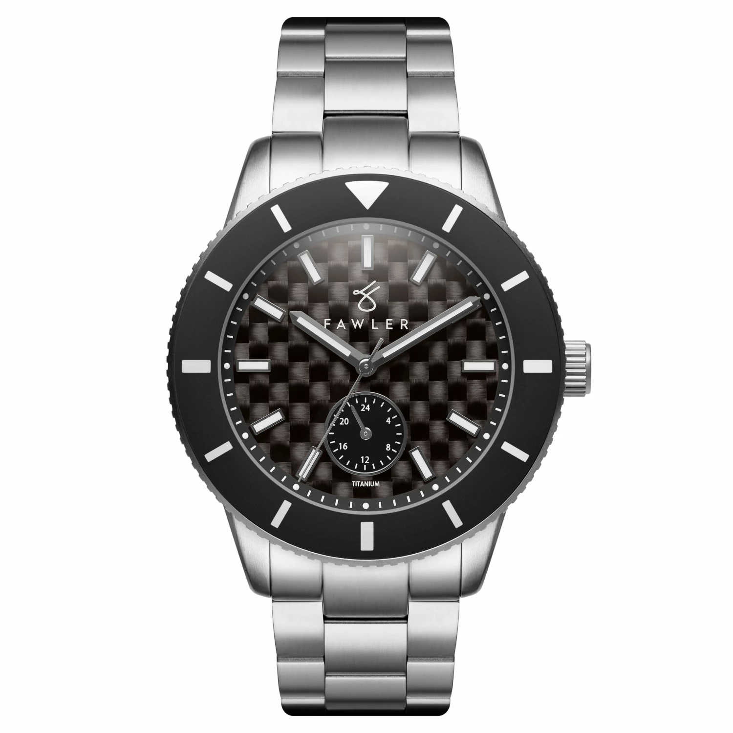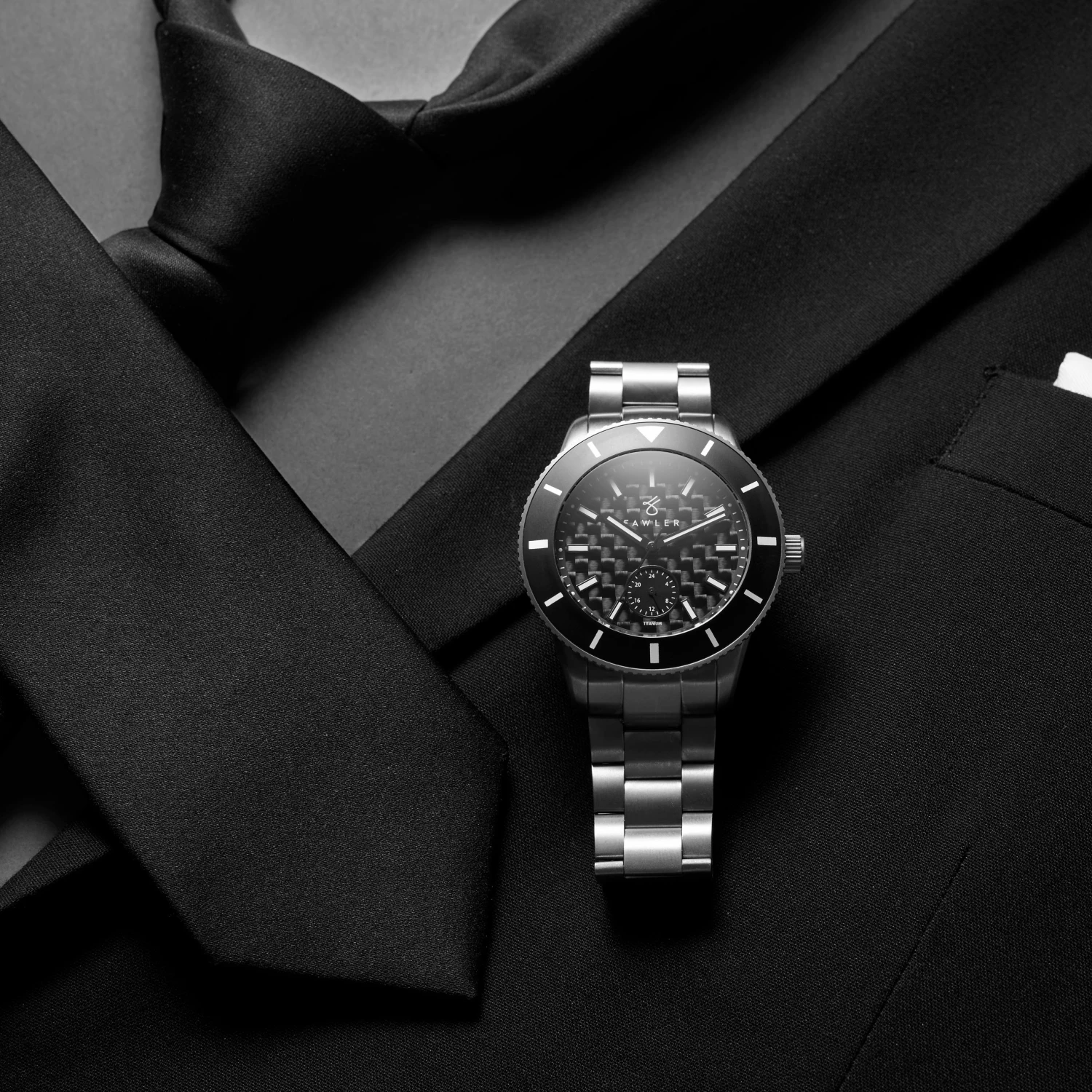 Propulsée par un mouvement à quartz Seiko VH60 haut de gamme, sa trotteuse se déplace tous les ¼ de seconde. Son cadran est décoré d’un sous-cadran affichant l’heure sur une échelle de 24 heures.