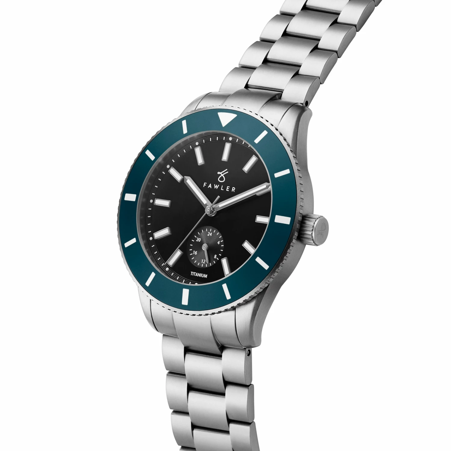 Son bracelet en titane est équipé d’une boucle déployante sécurisée. Son verre est un verre minéral trempé à double dôme ayant subi un traitement antireflet. La lunette en aluminium vous permettra de marquer l’heure à laquelle vous êtes entré dans l’eau pour calculer vos réserves d’oxygène.
