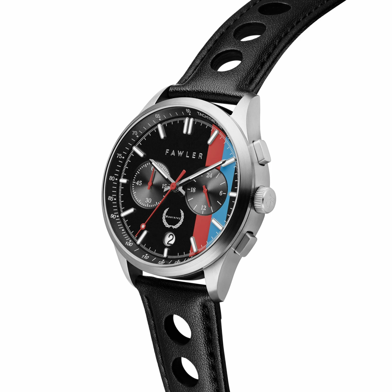 Glissez une montre de course classique à votre poignet. Mettez les gaz. La Monterey peut vous chronométrer, mesurer votre vitesse et a été conçue pour les professionnels de la conduite. Sa couronne et ses boutons tactiles sont même conçus pour être utilisés avec des gants.