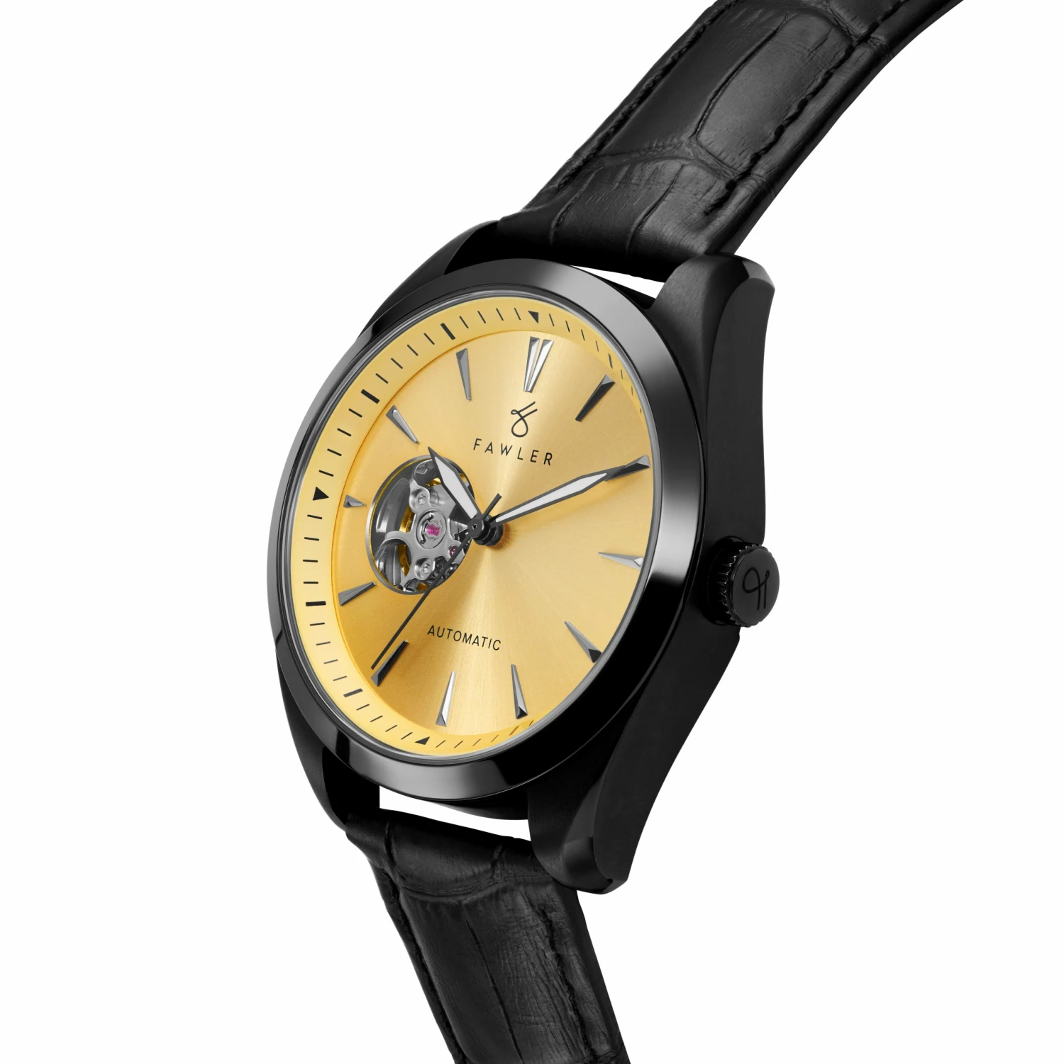 Les montres squelettes ont été conçues pour tous ceux qui veulent absolument savoir comment leur montre fonctionne. Et pour tous ceux-là qui attendent également de leur montre qu’elle soit d’une rare élégance, Fawler a conçu la série de montres pour homme Fenes.