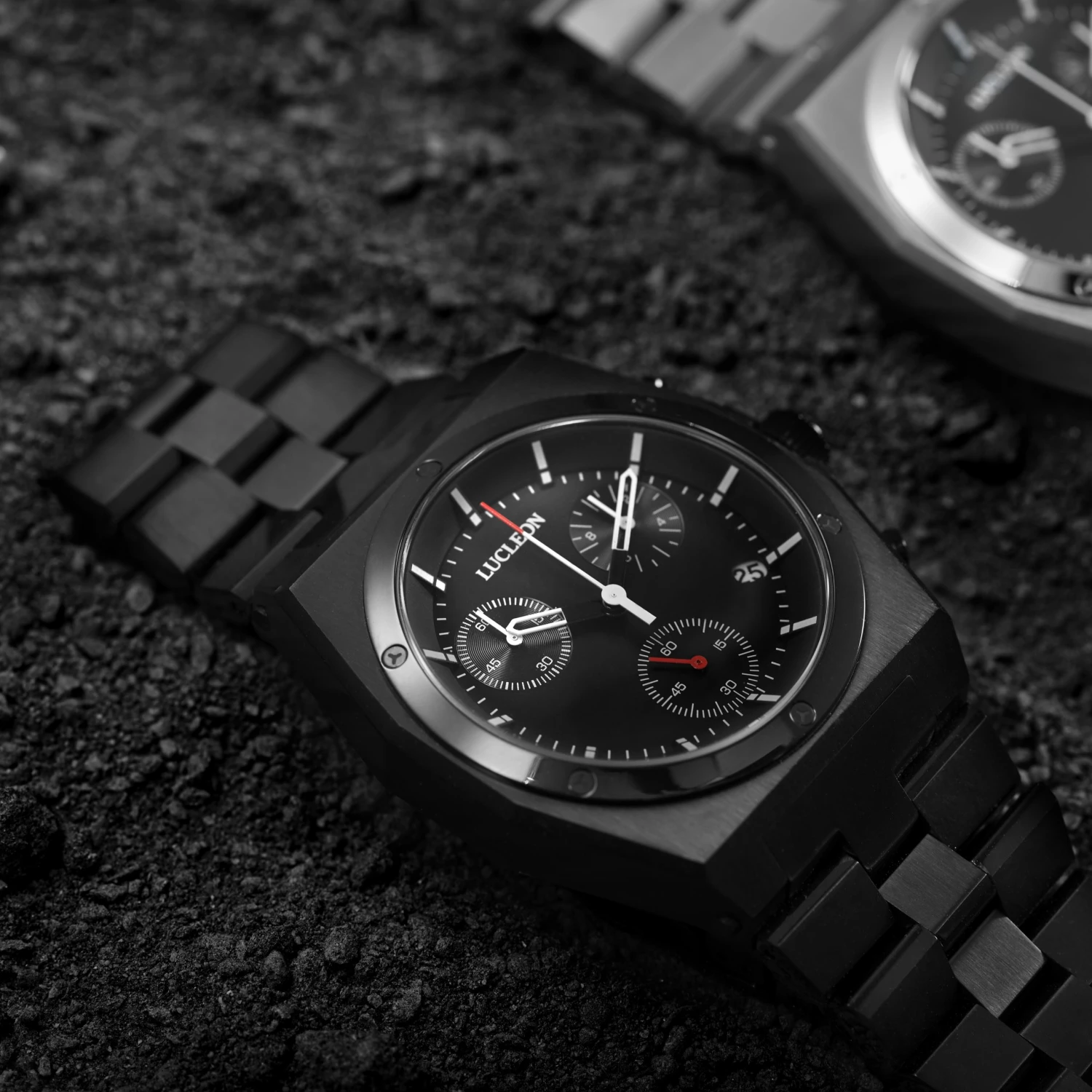 Tirez le meilleur parti de chaque instant qui passe à l’aide de cette montre chronographe noire en acier inoxydable 316L.