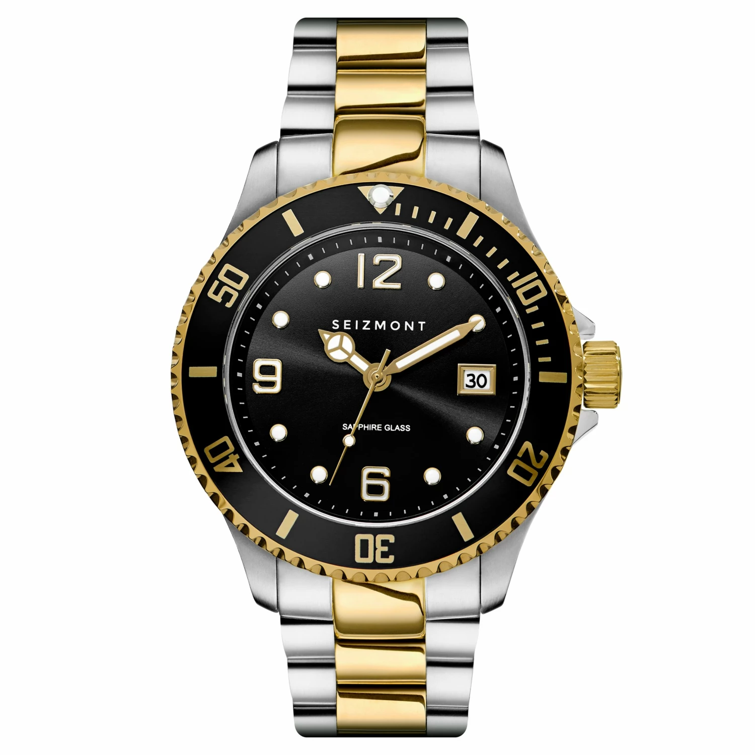 En plus d’afficher l’heure, cette montre de 42 mm dispose d’une lunette noire graduée. Le cadran noir comprend des aiguilles et des marqueurs de cadran luminescents, ainsi qu’une fenêtre de date facile à lire.