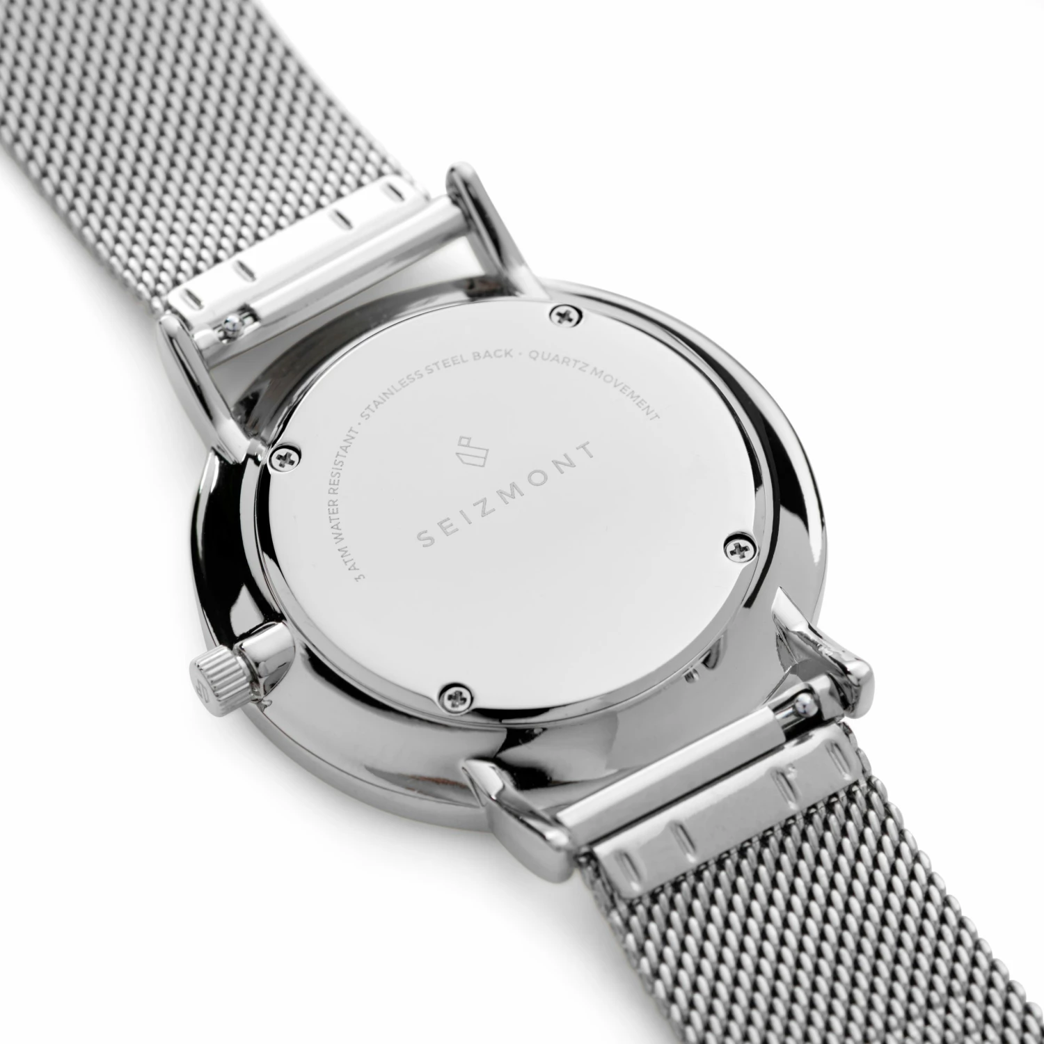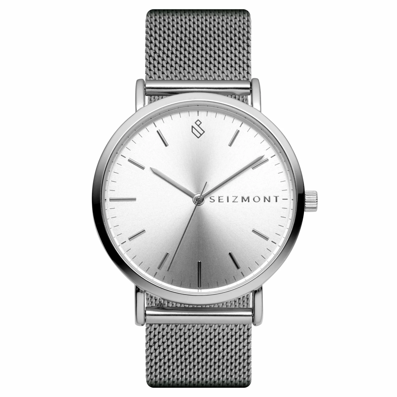 Son cadran est décoré de graduations et d’aiguilles argentés de couleur assortie au boîtier, ainsi que d’un logo Seizmont aussi discret qu’élégant. Le bracelet est en métal argenté est aussi robuste que confortable. Équipée d’un mouvement à quartz japonais, cette montre pourra être portée en toutes occasions.