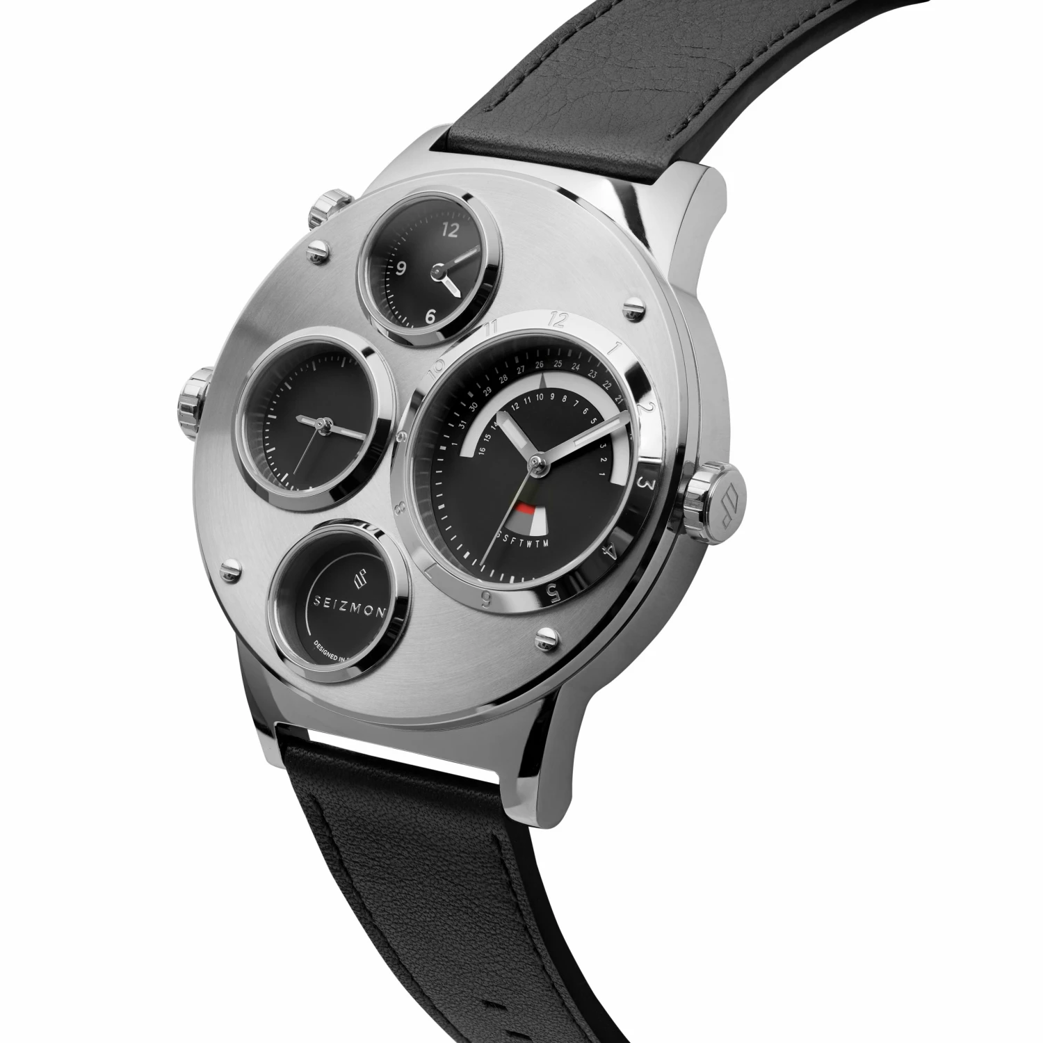 Équipée de 4 sous-cadrans, elle vous indiquera l’heure dans 3 fuseaux horaires différents et vous renseignera également la date et le jour de la semaine. Le tout en un seul coup d’œil.