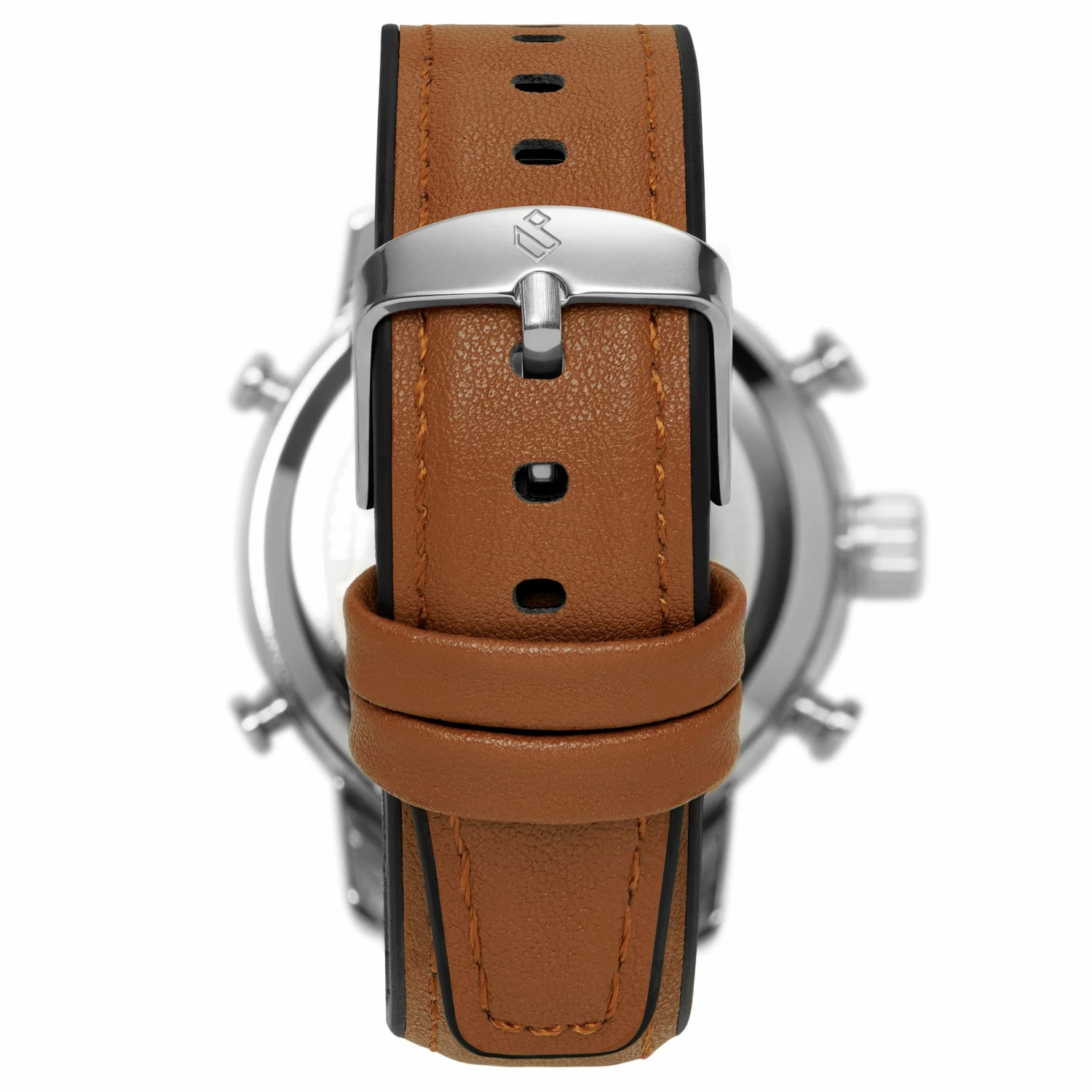 Cette montre pour homme est dotée d’un boîtier en acier inoxydable chirurgical de 43 mm avec un cadran blanc recouvert d’un verre de montre en cristal minéral trempé. La combinaison de cuir et de caoutchouc sur le bracelet de la montre offre durabilité, confort et flexibilité. Et grâce à ses broches à dégagement rapide, vous pourrez changer de bracelet en un clin d’œil.